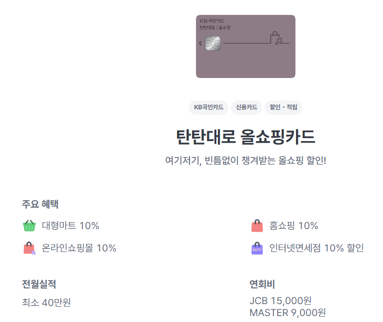 2. 국민카드 탄탄대로 올쇼핑